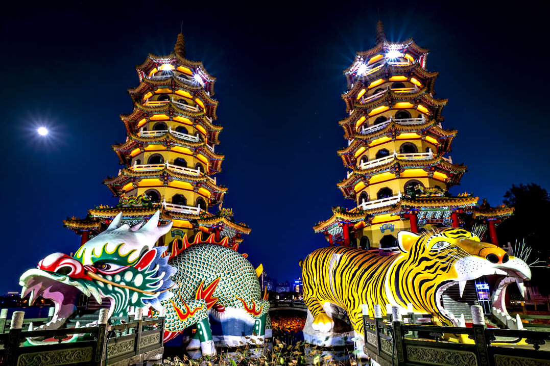 龍虎塔龍虎塔坐落在台灣省高雄市左營區蓮池潭畔,興建於1976年,因塔身雕有龍虎而得名。